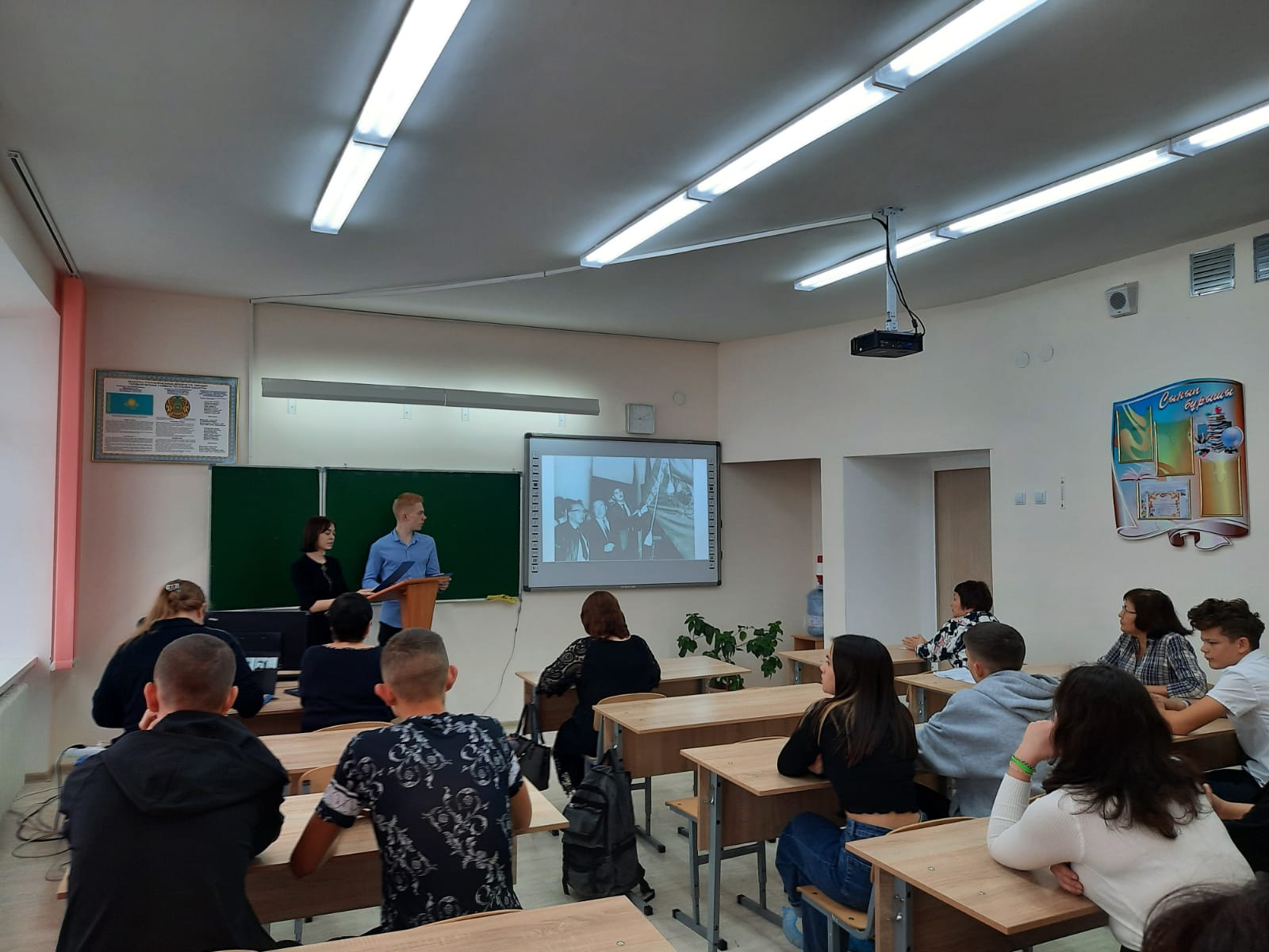 В Вечерней школе №1 ко дню празднования Дня Республики прошло общешкольное мероприятие «Қыран елім – Қазақстаным». Приняли участие учащихся 7-11 классов. Традиционно в начале мероприятия обучающиеся исполнили гимн страны. Ведущие рассказали историю зарождения праздника, какие преобразования произошли в Казахстане за последние годы. В ходе мероприятия прозвучали стихи, песни, прославляющие нашу Родину.
