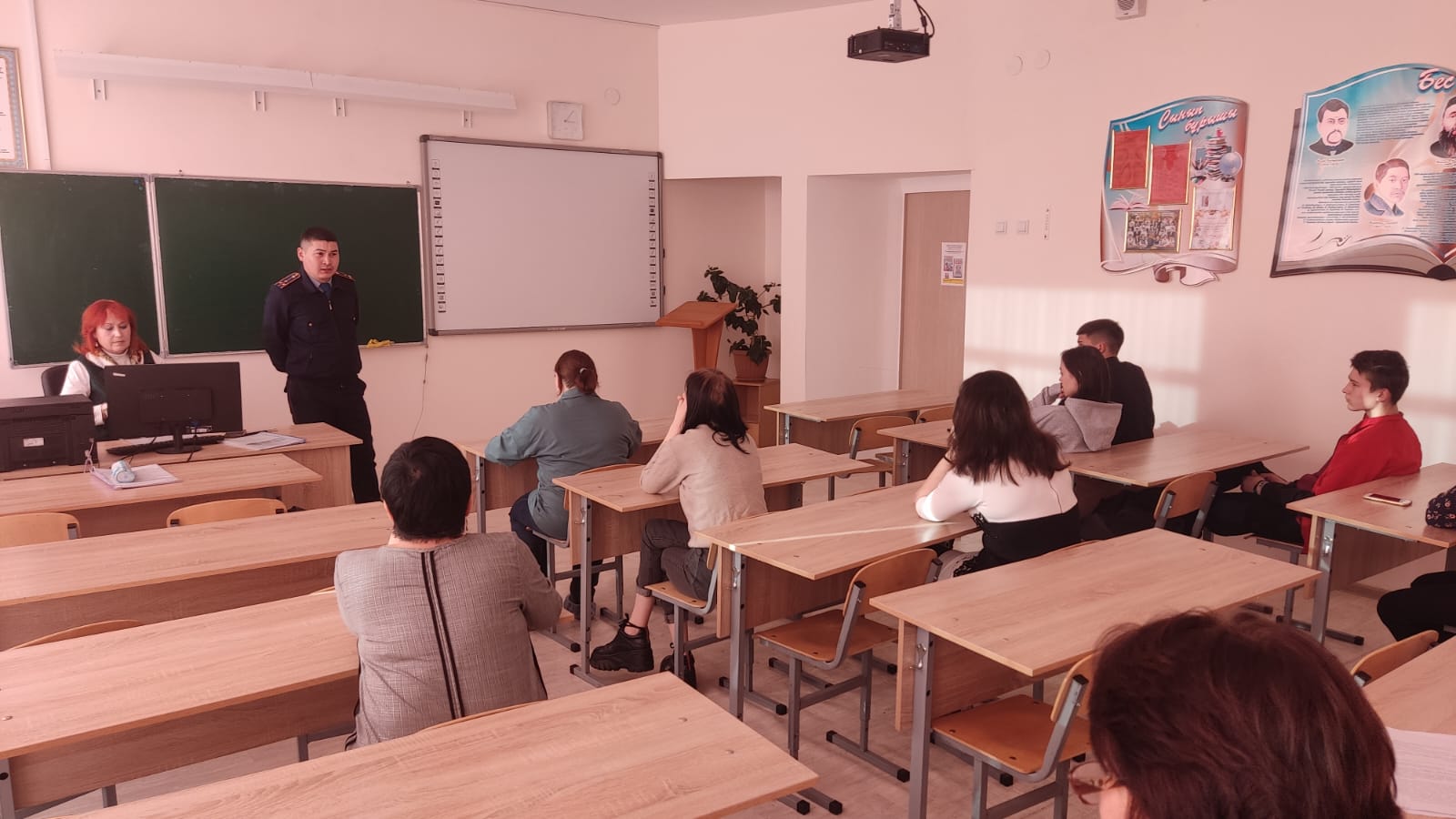 Организована встреча учащихся 9-11 классов со старшим инспектором полиции А.К. Атантаевым