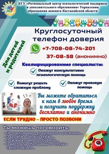 Правила деятельности психологической службы в организациях среднего образования Костанайской области